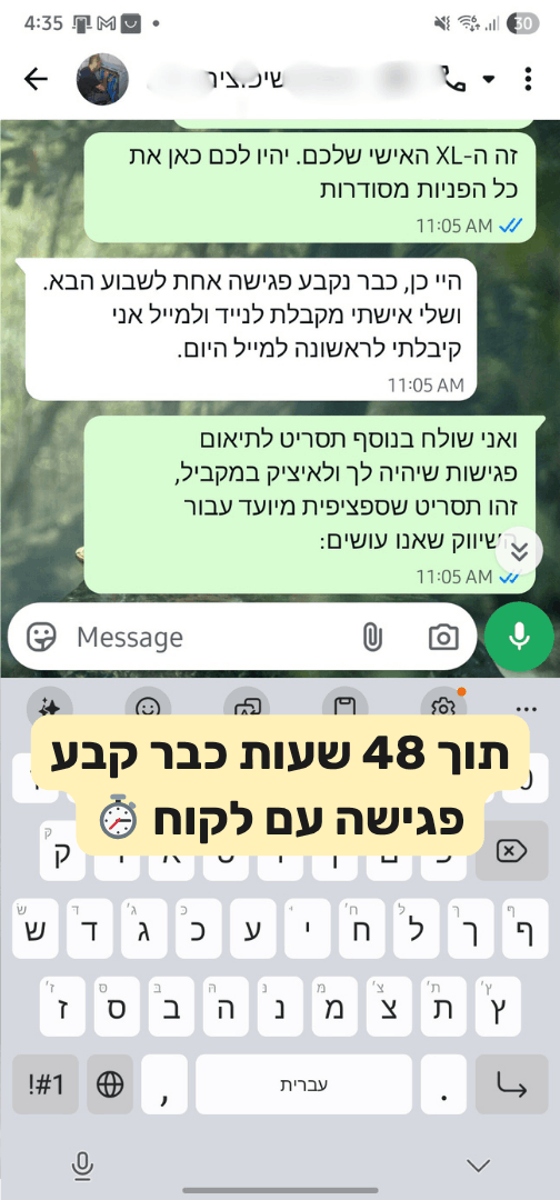 🔒 הפרטים נשמרים חסויים. לא מעבירים הלאה.